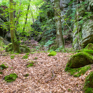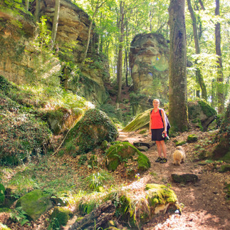 The trail that we felt was essential to explore is known as "Durch das Mühlenthal zu den Wasserfällen und Felsen." The Mullerthal, located in the north-east of the country, is characterized by forest massifs intersected by small, meandering waterways, unique habitats with towering sandstone formations, narrow rocky passages, enigmatic caves and gorges, and a rich variety of plant life. This area is often referred to as "Luxembourg's Little Switzerland," a name that aptly describes its picturesque beauty.